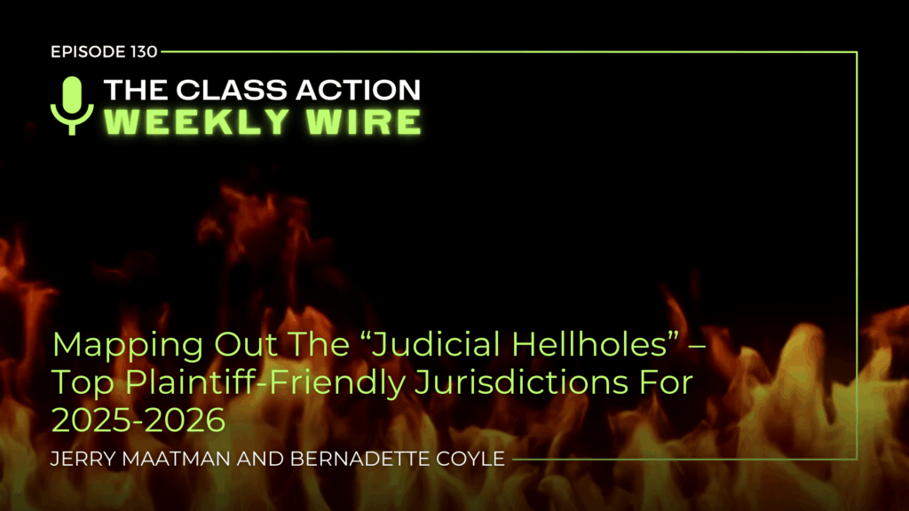 Duane Morris Takeaway:This week’s episode of the Class Action Weekly Wire features Duane Morris partner Jerry Maatman and associate Bernadette Coyle with their discussion of the 2025-2026 edition of the American Tort Reform Association’s (“ATRA”) “Judicial Hellholes Report,” which details the eight least favorable venues for corporate defendants across the country.