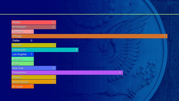In addition to tracking the total number of filings, we closely monitor which of the EEOC’s 15 district offices are most active in terms of filing new cases over the course of the fiscal year. Some districts tend to be more aggressive than others, and some focus on different case filing priorities. The following chart shows the number of lawsuit filings by EEOC district office.