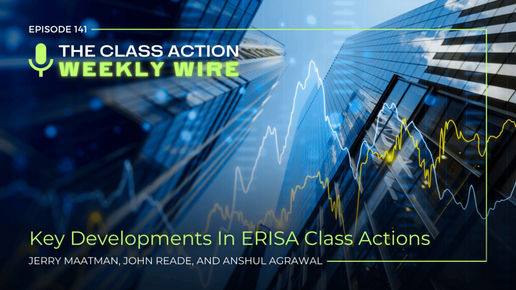 Jerry Maatman: Welcome, listeners! Thank you for being here on our weekly podcast series, the Class Action Weekly Wire. I’m Jerry Maatman of Duane Morris and joining me today are my colleagues John Reade and Anshul Agrawal. Thanks so much for being on our podcast.