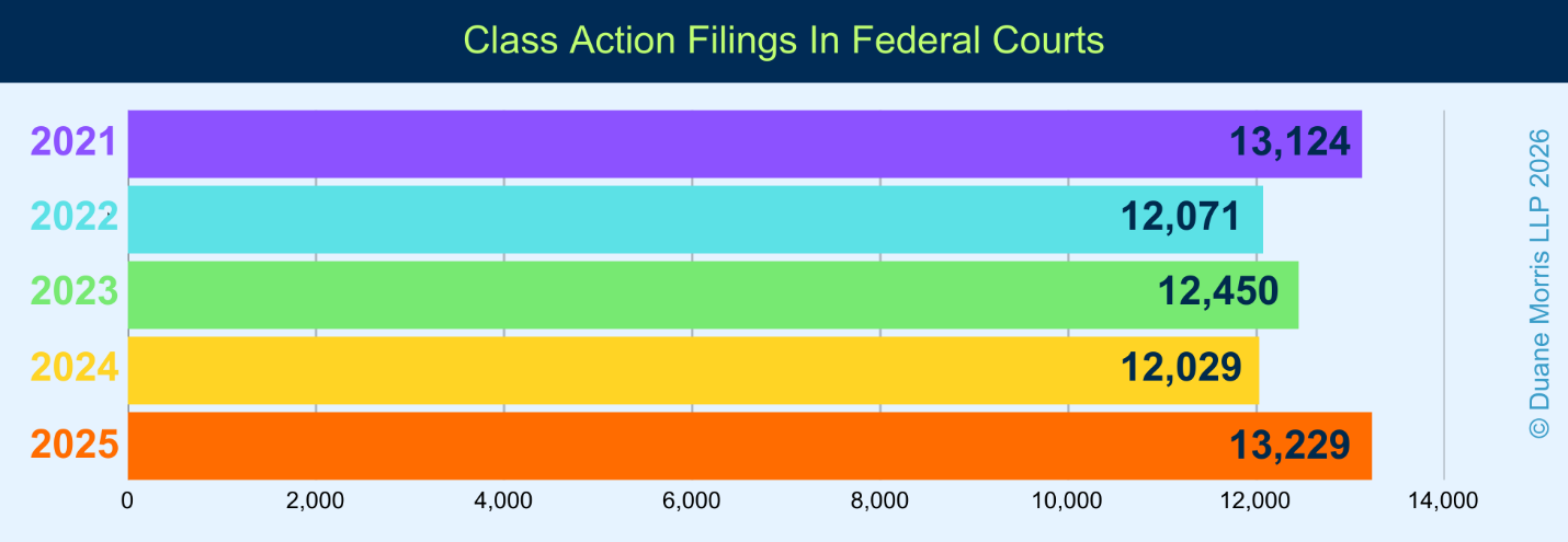 AI has been an accelerating force in class action litigation as a source of claims stemming from the development, use, and promotion of AI technologies. In 2025, some of those filed claims or ongoing claims included claims stemming from alleged copyright infringement, algorithmic bias or discrimination, and securities fraud.