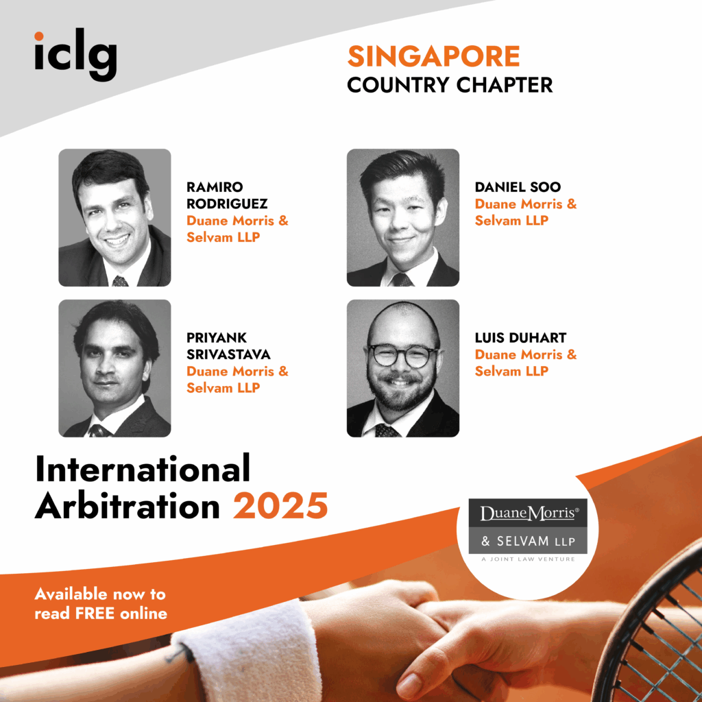 The International Comparative Legal Guide (ICLG) on International Arbitration 2025 has been launched recently. Duane Morris & Selvam’s Directors Ramiro Rodriguez, Daniel Soo, Priyank Srivastava and Associate Director Luis Duhart have contributed to the Singapore chapter.