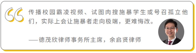 余启贤认为,传播这类视频、试图肉搜施暴学生或号召孤立他们,实际上会让施暴者走向极端,更难悔改。“录影动机很重要。如果是为了举报采取纪律行动,通常会得到积极的评价;若只是为了嘲笑、羞辱或贬低受害者,性质完全不同。